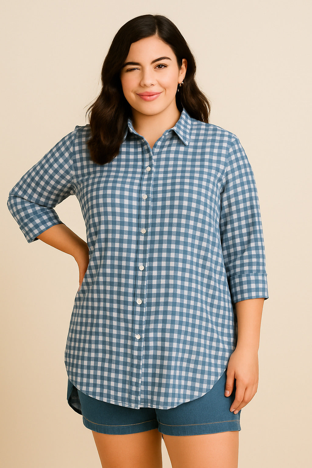 This elegant shirt combines the comfort and versatility of a long kurta shirt. Crafted from luxurious, ultra-soft fabric, it includes a practical side pocket and an A-line cut. The distinctive high-low hem brings a modern, summery flair, making it a must-have for those who appreciate polished style with subtle character. Featuring a gingham check pattern, it offers a cool print, impeccable fit, and standout appeal.