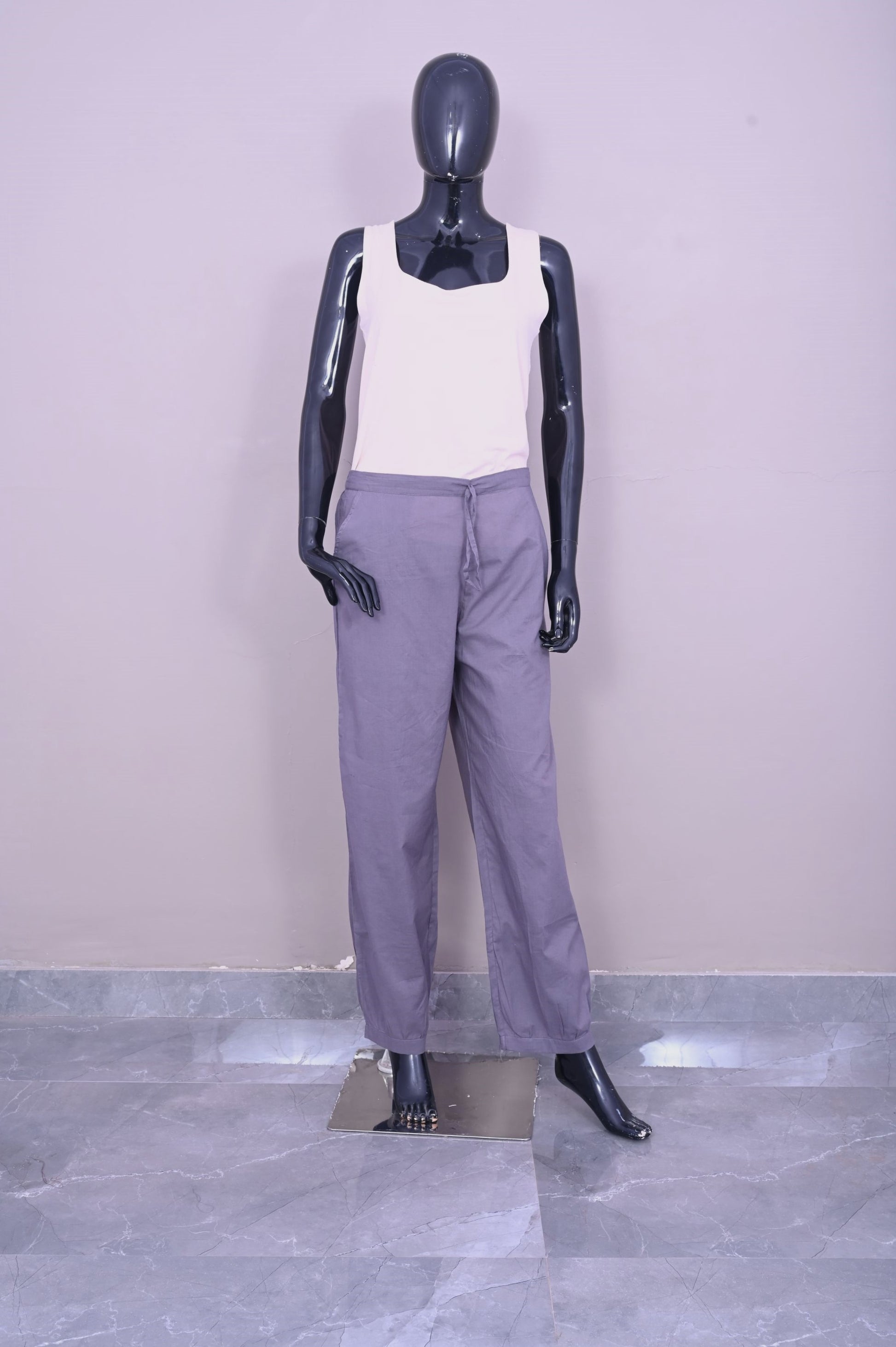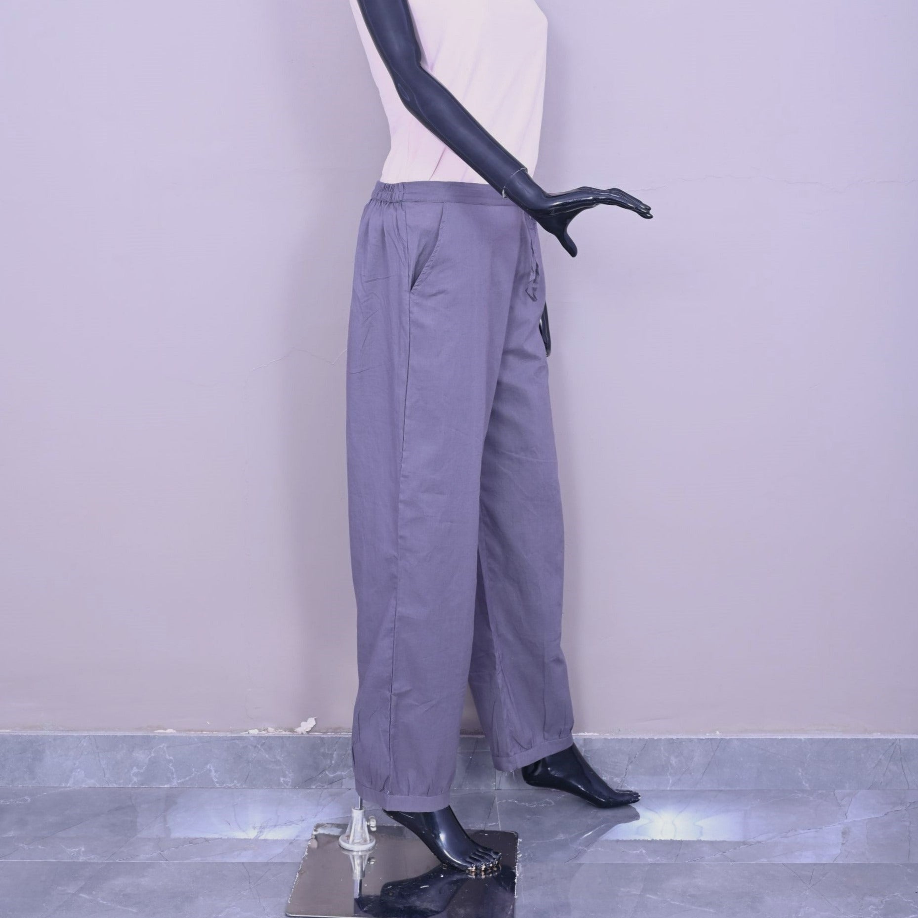 Exquisite in design and crafted from the utmost hallmarked cotton, the cambric derived soft cotton salwar is graced with pockets on both sides, and a pleated bottom, a half-elasticized waistband and half-belt with an adjustable drawstring all contributing to a refined yet chic look.